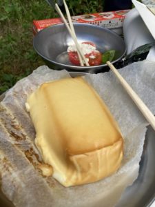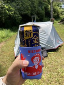 ただ、山の方だったのであんがい暑くなく、虫も思ったよりいませんでした。でもテント設営やタープの準備となると汗が止まらず替えのTシャツ4枚では足りませんでした・・・
