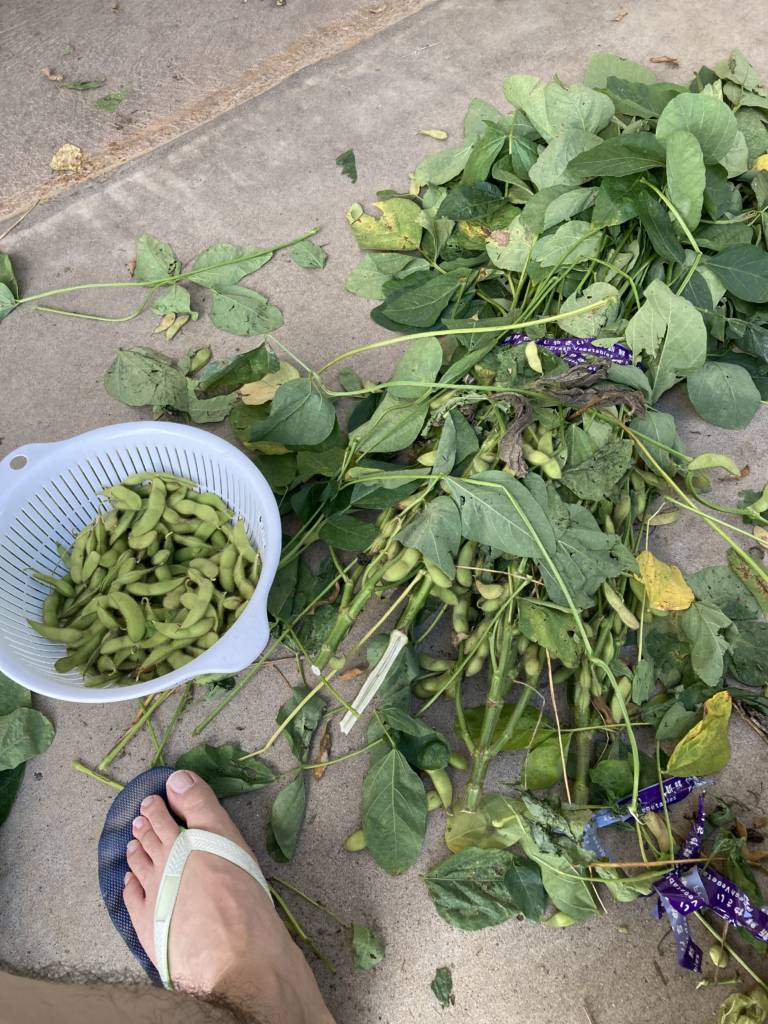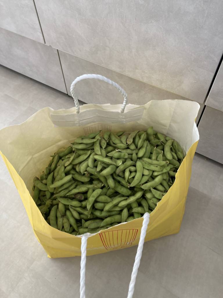 コスパを考えると後者かもしれませんが、中々枝付の所からもいで、水洗いして、塩もみして、塩ゆでして・・・という所までしたことありませんでした。この経験を買ったと思えば安いと思うし、枝豆を早くもぐスキルも上がりました。そして何より楽しい!自分の好きな塩梅で茹でれるし。