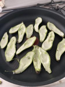FBで知り合いがやっていた、さやの綿の蒸し焼き。
