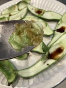 醤油を垂らして、スプーンで綿をすくって食べる。